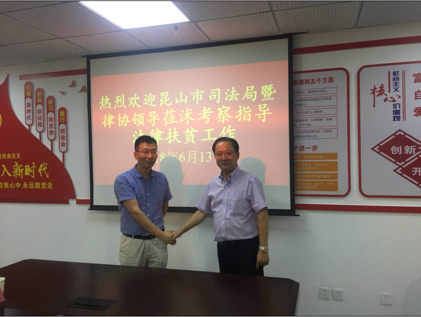 为了积极响应省律协促进全省律师业均衡发展工作要求,2018年6月13日、14日,我所许雪根副主任代表我所远赴沭阳县,在昆山、沭阳两地司法局领导见证下,与江苏沂淮律师事务所签署了《促进江苏省律师业区域均衡发展合作协议书》。