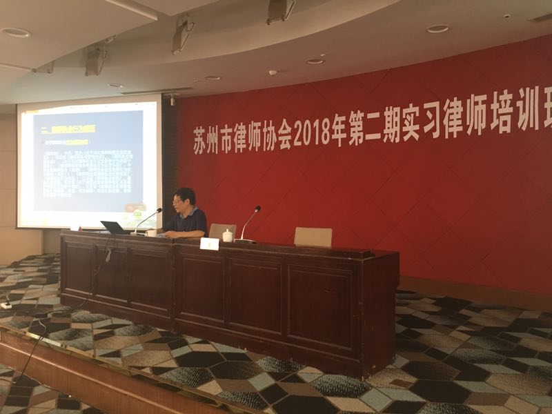 2018 年7月31日,江苏沉浮律师事务所主任张德元律师出席苏州市律师协会2018年第二期实习律师培训班并为全体学员授课。