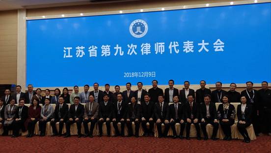 2018年12月8日,江苏省第九次律师代表大会隆重召开。来自我省各市、地区的200多名律师代表参加了会议。江苏省人大常委副主任、党组成员曲福田,江苏省副省长、省政府党组成员刘旸,省政协副主席、党组成员周继业出席会议。中华全国律师协会副会长蒋敏到会致辞,江苏省司法厅厅长柳玉祥主持开幕式。省律协八届理事会会长薛济民代表八届理事会作了工作报告。