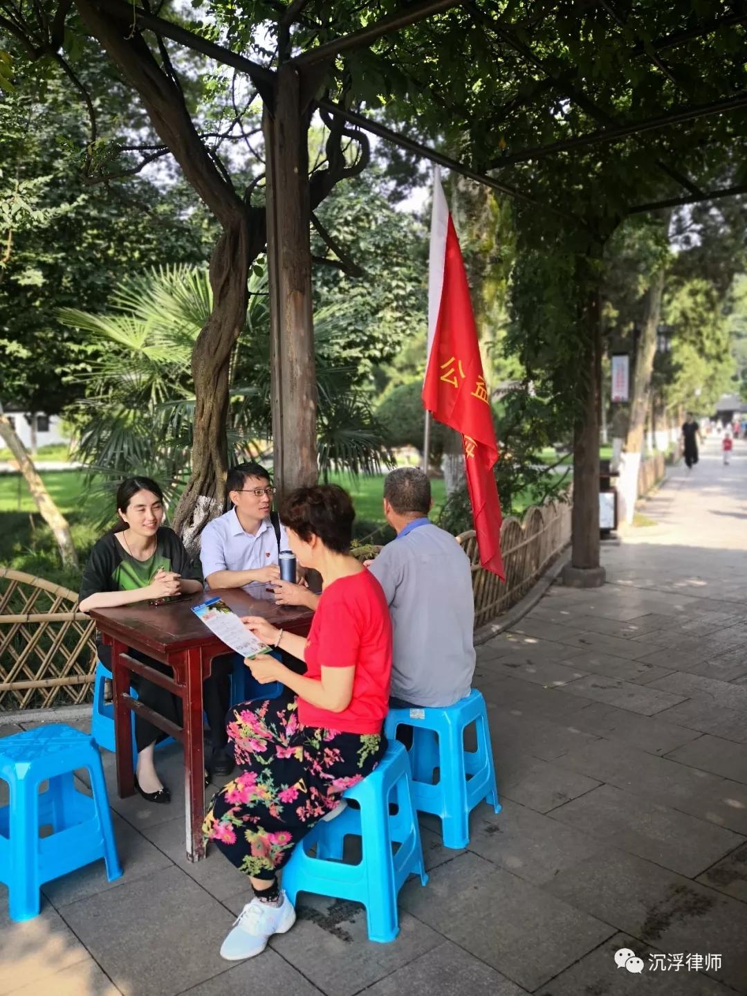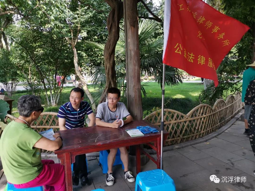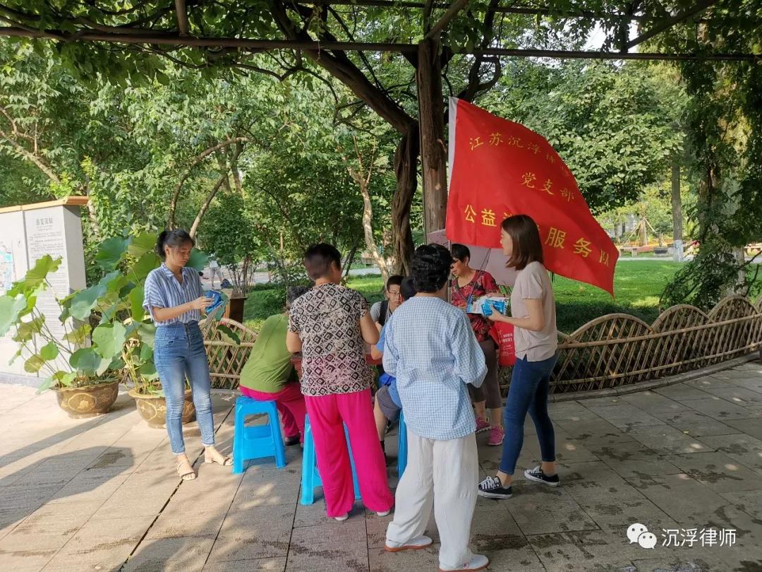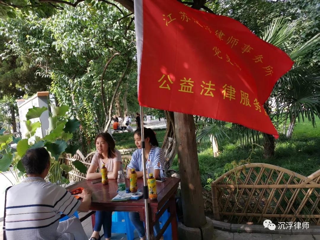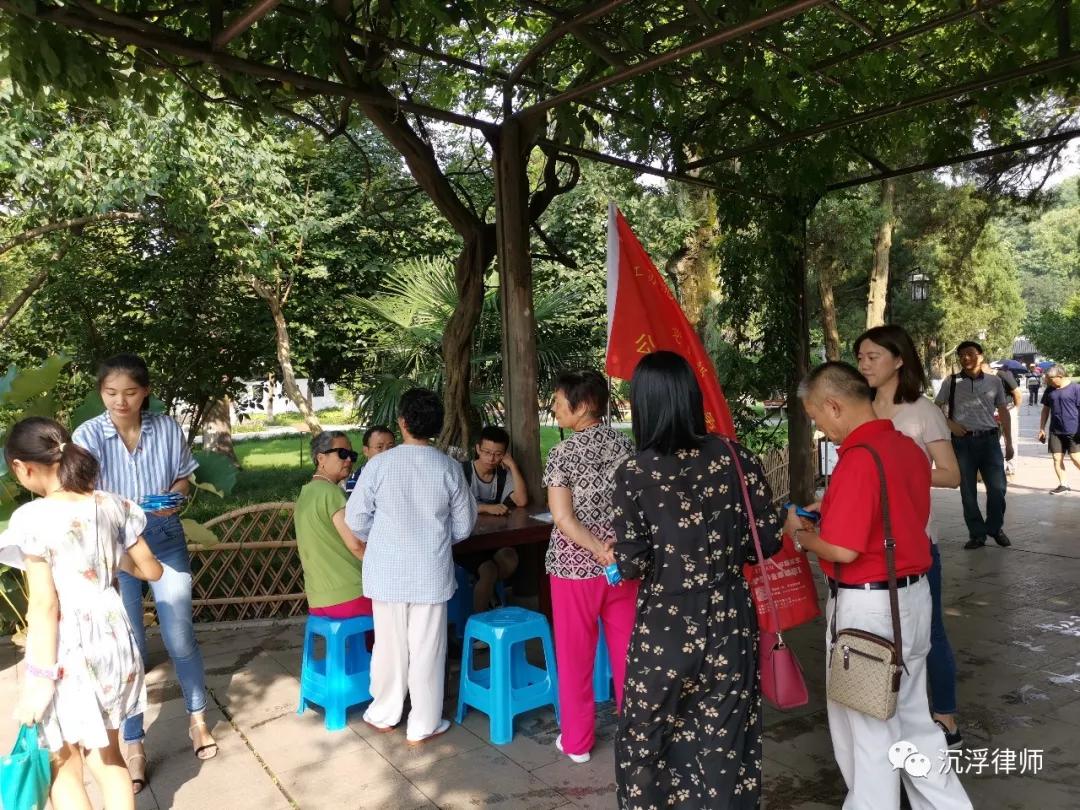2019年7月28日上午,江苏沉浮律师事务所党支部的党员律师们按照上级文件指示精神,以努力实现司法行政高质量发展,增强为人民服务的意识和能力,树立我市律师行业的良好形象为目标,在我市亭林公园内紫藤树下开展了一次以“海棠花红映七月”为主题的公益法律服务活动。