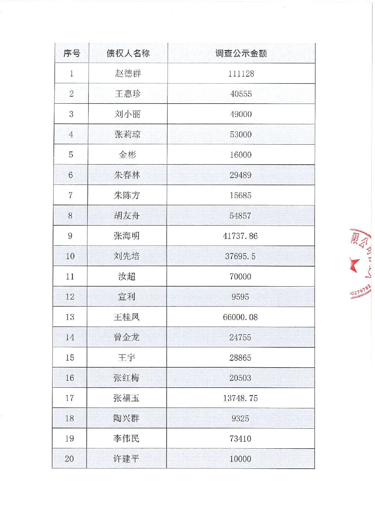 苏州博卓纺织有限公司债权表公示及职工债权表公示情况如下图所示: